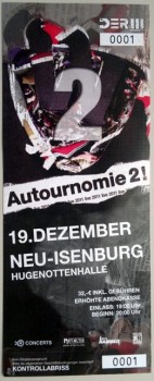 So sehen also die Tickets der Autournomie Part II aus – fast genau so wie die von Part I, nur mit dem neuen DER W – Logo oben rechts und einer großen „2“ auf dem „W“. Heute haben bereits die ersten Fans ihre Karten erhalten, und gleich Fotos davon auf unserer Facebook-Seite gepostet. Danke nochmal an Dirk für das Foto – man beachte besonders die Nummer „0001“. Wer noch weitere Fotos hat, kann sie uns gerne schicken!